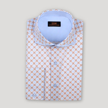 Whether dressed up in a suit or worn individually, our tile-inspired dot print shirt is a stylish addition to your wardrobe. It's elegantly finished with fine solid color contrast trim.
