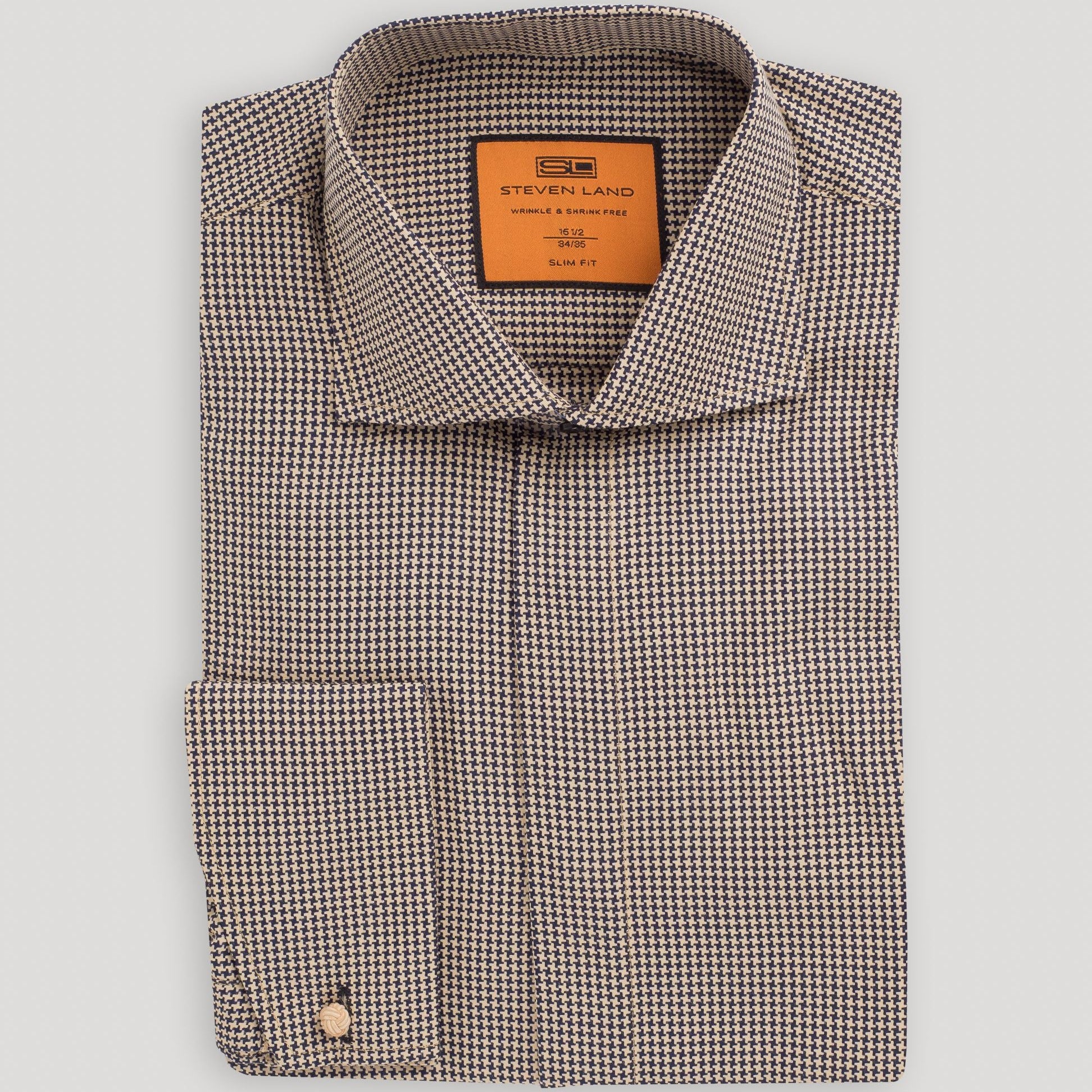 One cannot go wrong with having this Two Tone Houndstooth shirt in their wardrobe as a dress shirt option. The Spread collar looks great on its own but even better with one of our Big Knot Ties. The angled French cuffs further elevate the shirt’s distinguished appeal. Designed to accommodate cufflinks, they provide an opportunity for you to express your personal style.