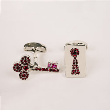 The Lock & Key Cufflinks Set | Silver with Ruby Red Stone Accent