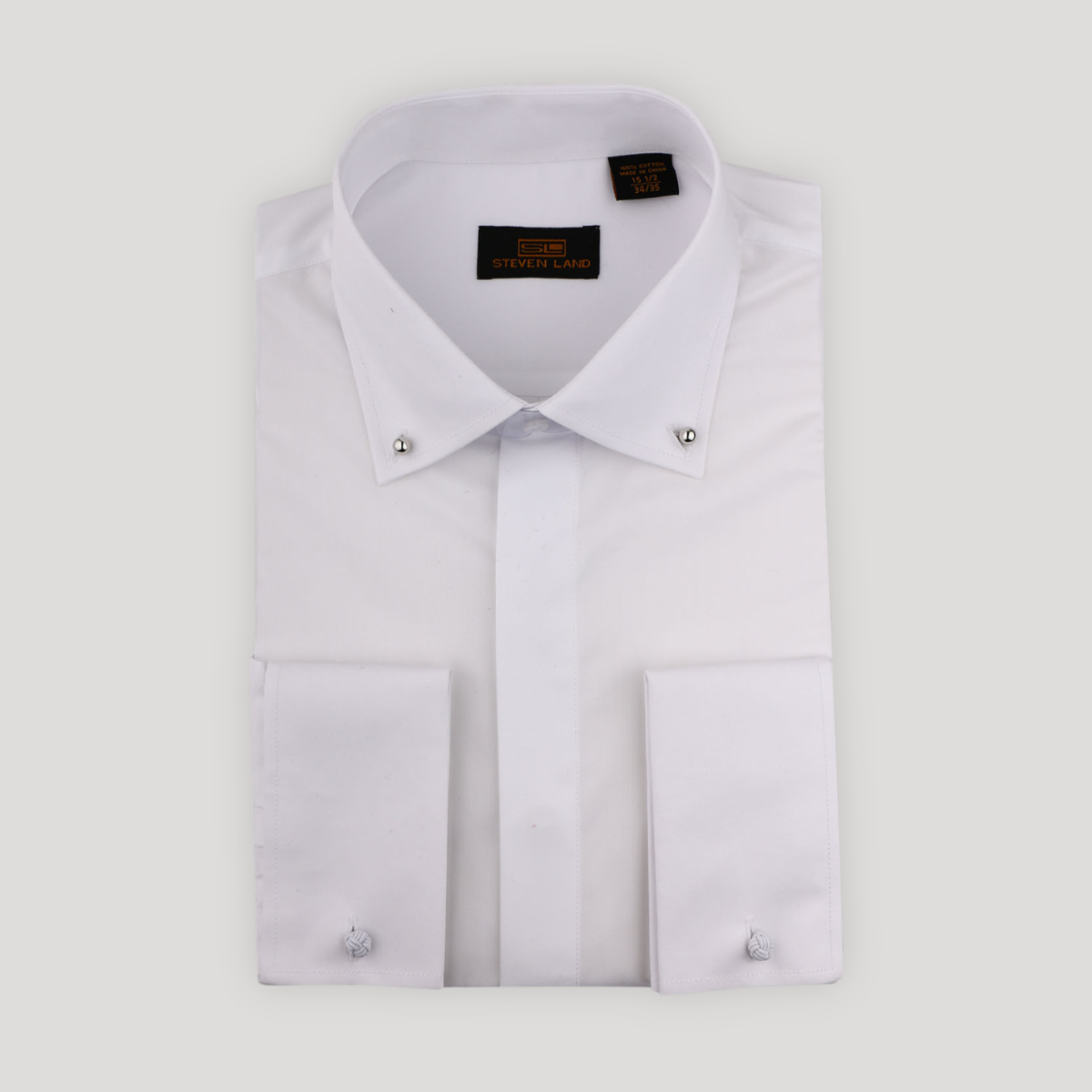 Introducing the Sterling Dress shirt - a revolutionary new dress shirt that elevates your style to the next level. Made from premium 100% cotton fabric, this shirt is built to last and keep you looking sharp. The anti-rust metal Shank buttons add a touch of class, while the two unique round metal buttons serve as a functional button-down collar and add a touch of dapperness. The "perfect" fit is tailored to your body, giving you a polished look without sacrificing comfort. French cuffs and removable collar stays complete the look, and we even include complimentary silk knots to make sure you're always dressed to impress. Dry clean safe, this shirt is the perfect choice for any occasion. Upgrade your wardrobe today with the Rolland Dress shirt.shirt.