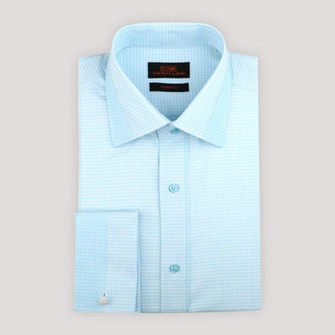 A textured diamond pattern is woven into this luminous cotton shirting. The darker reverse fabric face is pieced at the collar, cuffs, and placket for extra shine.