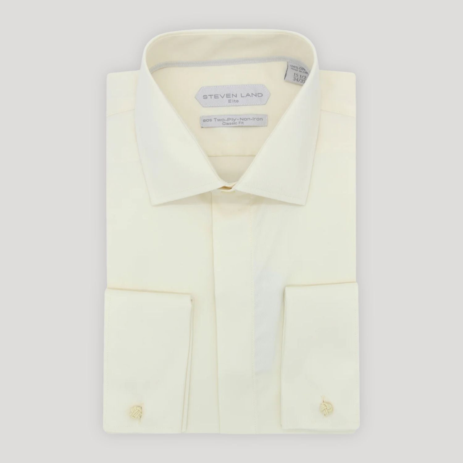 Hidden Buttons Non Iron 2 Way Stretch Dress Shirt | Cream