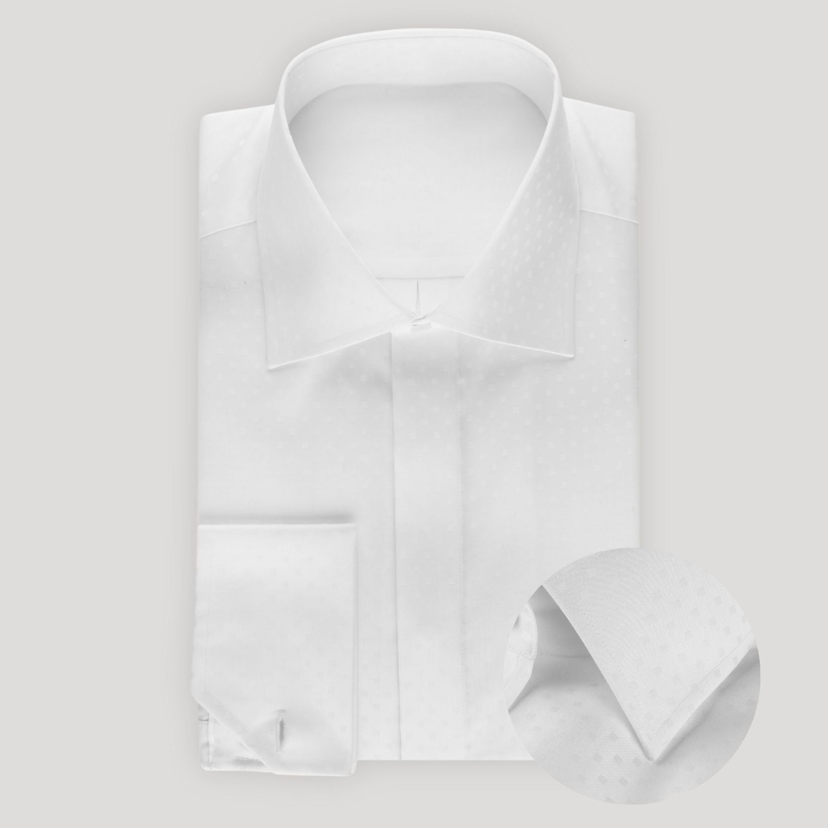 Made for comfort, this soft luxury crafted high quality 80’s Two-Ply Cotton Non Iron Fabric will keep you cool and dry for complete comfort. Perfect for all formal events. From black tie to cruises, weddings, and concert performances. This textured micro boxes shirt is sure to shine wherever it's worn.