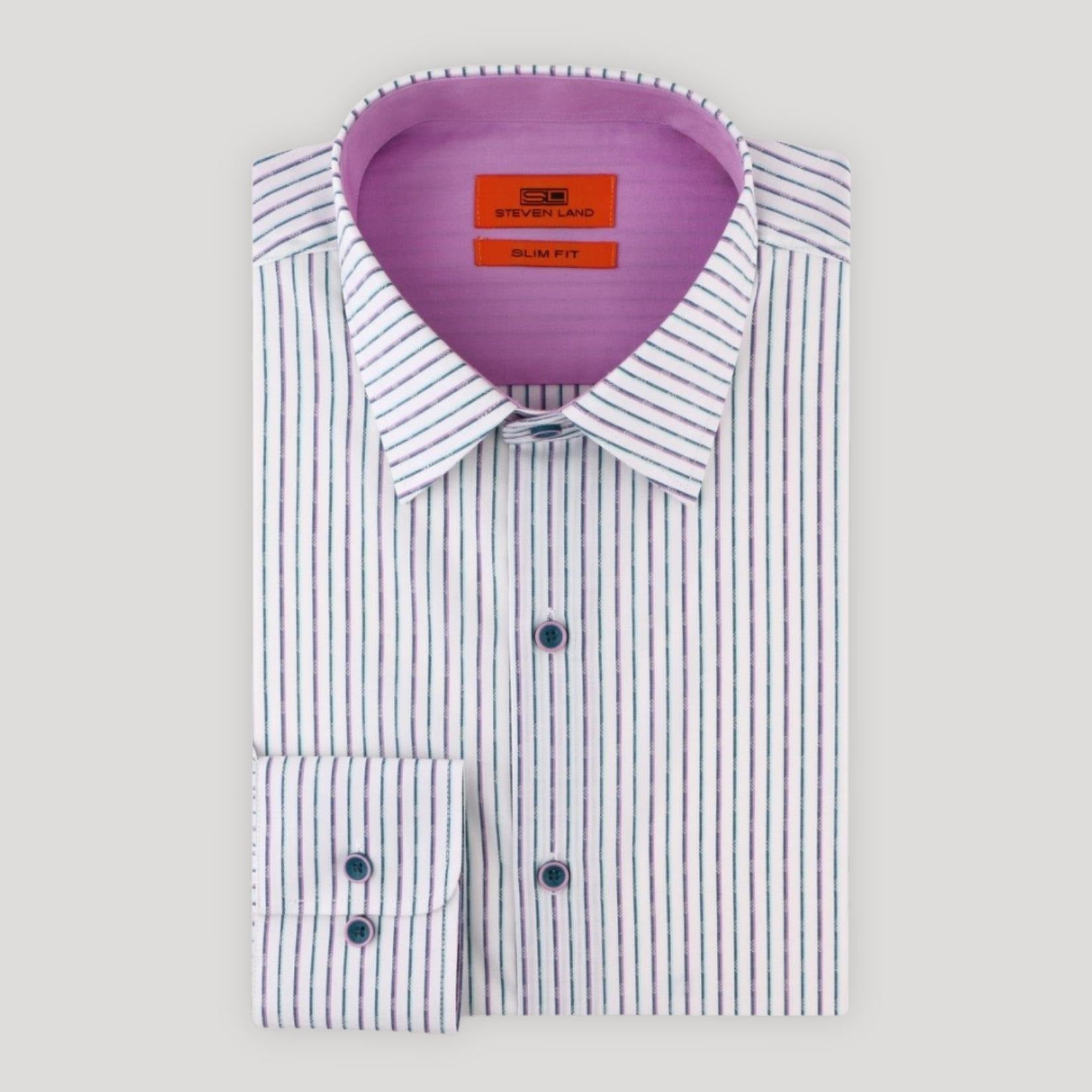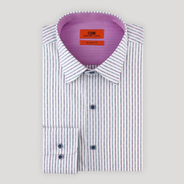 This shirt features fine stripes in contrasting seasonal colors, with an added detail of a small woven diamond pattern for extra flavor. Fresh color combinations add variety to your wardrobe. It's crafted from a comfortable cotton blend fabric and offers a modern and sleek look.