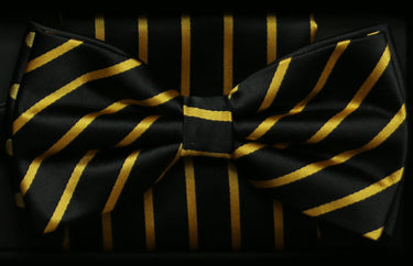 Elevate your wardrobe with the Steven Land Striped Pattern Pre-Tied Bow Tie and Hanky Set, perfect for weddings, graduations, or any other formal event.