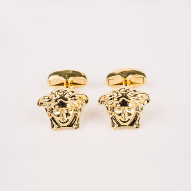 Channel the power of the gods when you wear this Steven Land cufflink set. Subtly styled after the famed head of Medusa, these cufflinks will add a touch of elegance with a hint of danger to your formal wear. You are not a man to be messed with in these gold accessories fit for a king.