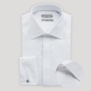 - Features a classic point collar and French cuffs, complete with complimentary silk knot cufflinks