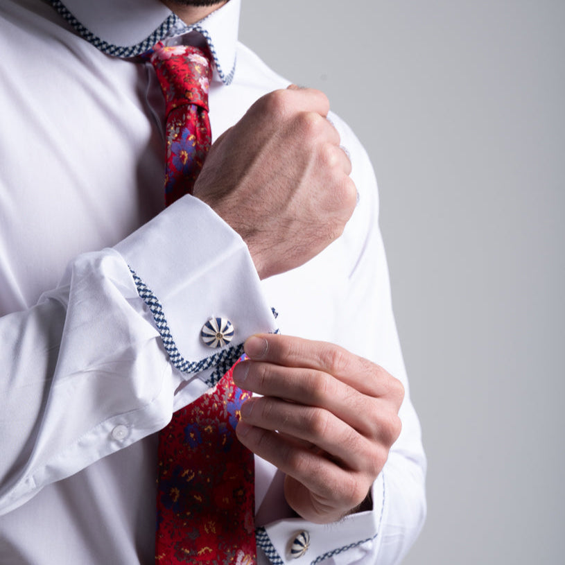 The Steven Land Pierre Tie has been crafted using the finest silk. Inspired by Artwork of Pierre-Auguste Renoir balancing a mix of carefully selected contrasting colors for a youthful yet sophisticated style. Pair with our Elite dress shirt for the perfect finishing touch to any formal look