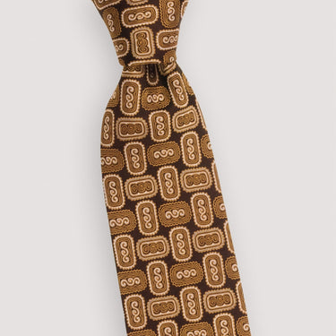 The Aztec Silk Tie is a quality tie made from the softest silk fabric that will bring your luxurious menswear to the next level. The alternating direction of the exotic tiles attract the eye while the smooth silk catches the light to enhance the vibrance of the line work. This men’s accessory will make your whole outfit look top tier.