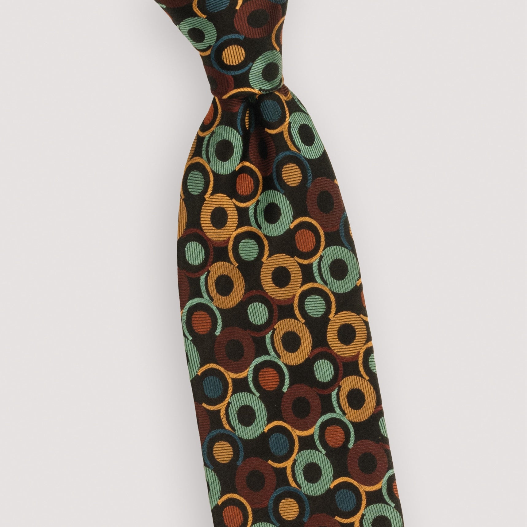 The Monaco Silk Tie features an interesting pattern of repeating circles and semicircles that catch the light when you are in motion. The high quality silk this tie was painstakingly crafted from will elevate your outfit with its luxurious feel. With a nice heft, the Monaco Silk Tie will rest perfectly on the chest of the most sophisticated gentlemen.