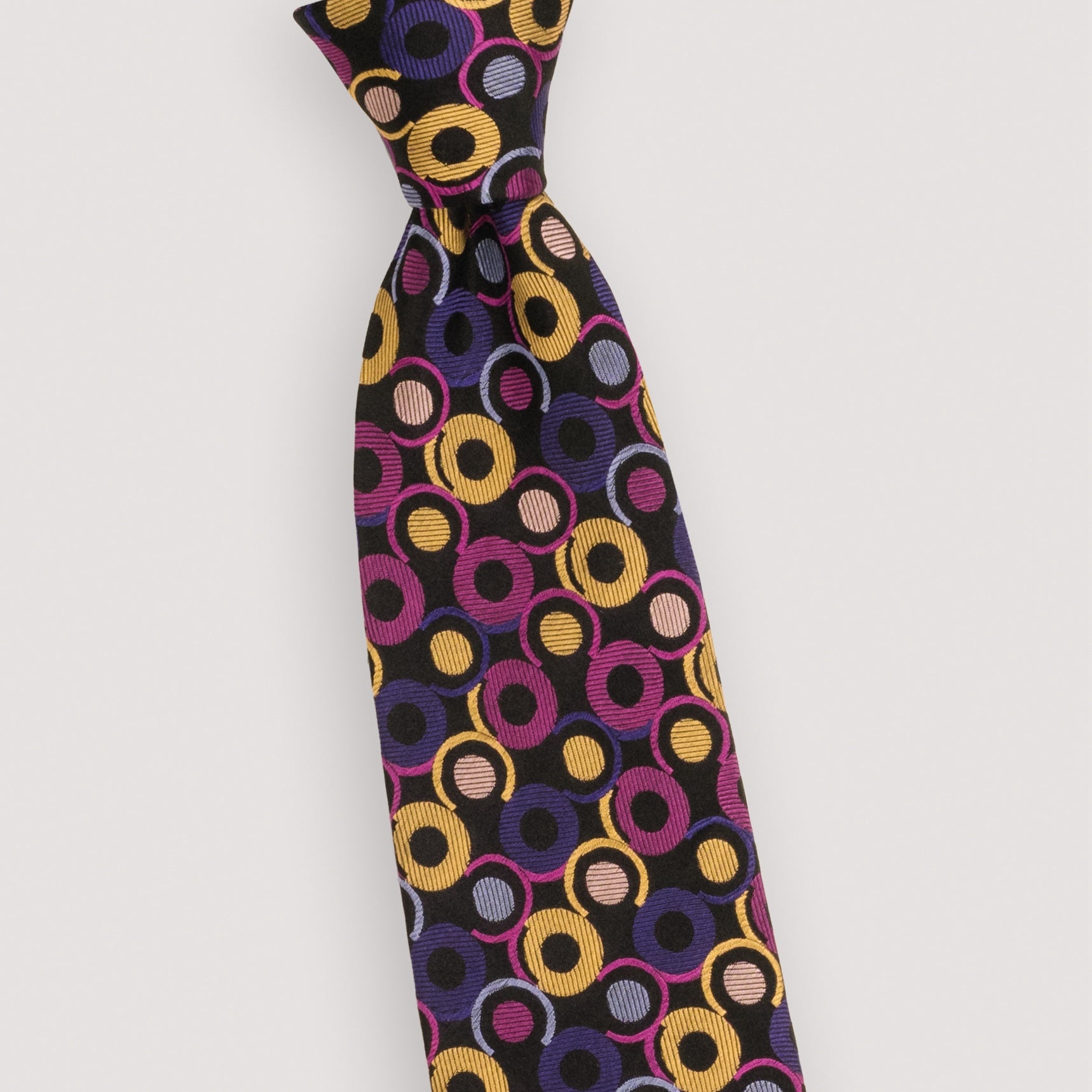 The Monaco Silk Tie features an interesting pattern of repeating circles and semicircles that catch the light when you are in motion. The high quality silk this tie was painstakingly crafted from will elevate your outfit with its luxurious feel. With a nice heft, the Monaco Silk Tie will rest perfectly on the chest of the most sophisticated gentlemen.