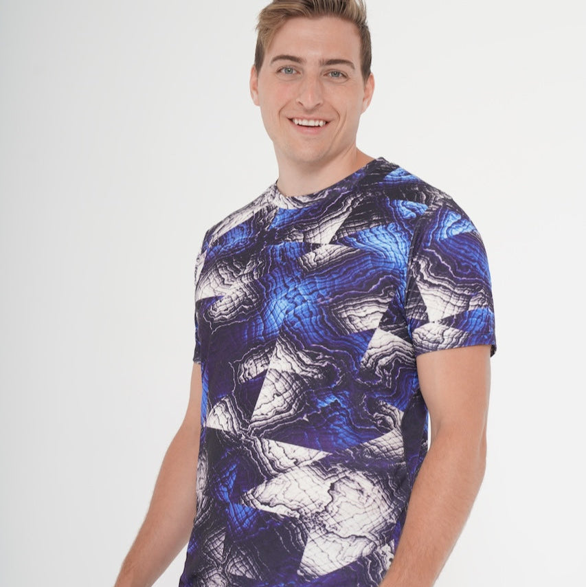 This distinctive T-shirt features a unique blend of a snakeskin design and a round collar neck, providing a close-fitted style for those who want to look spectacular. It's a versatile piece that can be worn with matching dress shoes or boots.