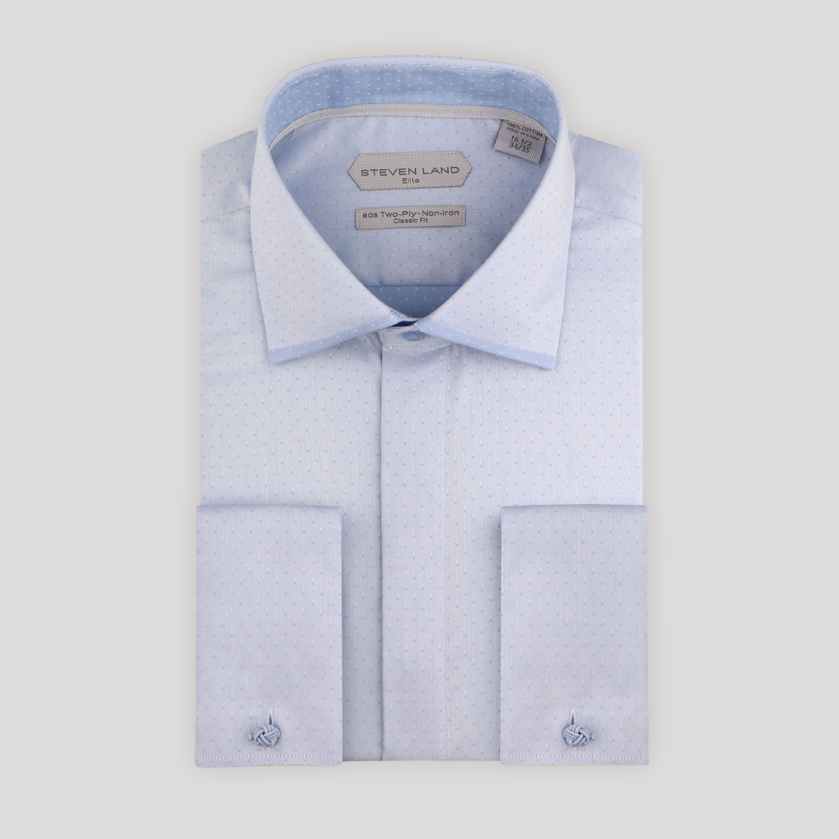 A clever detail blurs the border between clean and smart casual shirts. Our premium jacquard dot fabric features two tones of color, which let us add a border detail that helps you up your style game.