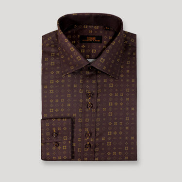 Satin Motif Pattern | Point Collar | Button Cuff | Brown
