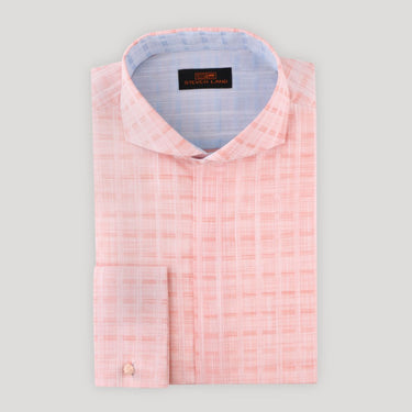 The extraordinary strié weave of this shirt conceals an elegant check pattern that gently reflects light. The shirt’s relaxed vibe suggests summer weddings and vacation evenings.