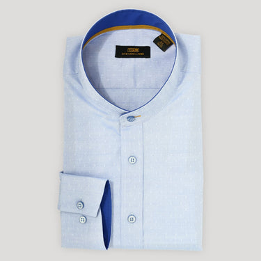 Banded Collar Textured Stretch Dress Shirt | Blue