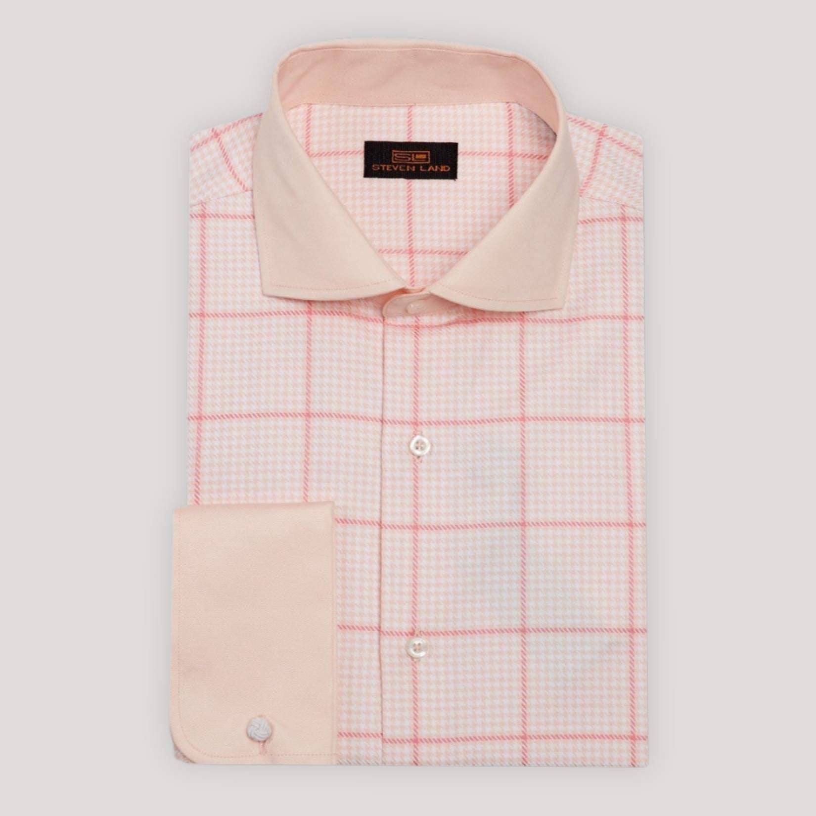 This hounds tooth has been scaled up, and renewed with a graph over-check. We added a solid color contrast collar and cuffs to add some flair.