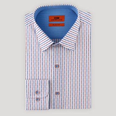 This shirt features fine stripes in contrasting seasonal colors, with an added detail of a small woven diamond pattern for extra flavor. Fresh color combinations add variety to your wardrobe. It's crafted from a comfortable cotton blend fabric and offers a modern and sleek look.