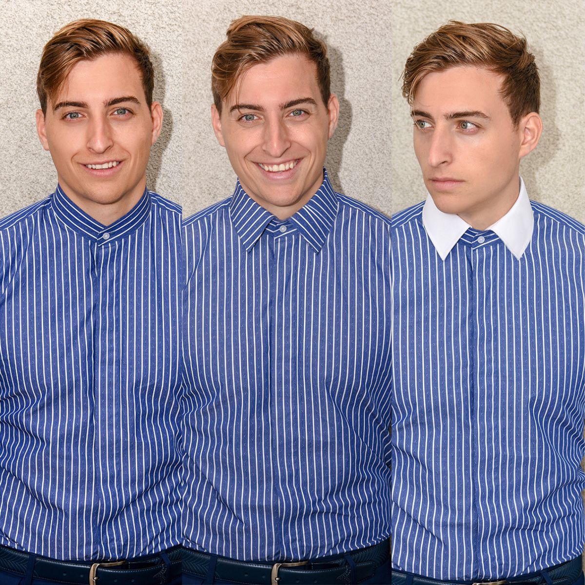 Triple Collar gives you THREE WAYS to up your STYLE game. Start with the band collar for a casual vibe, add the same fabric collar for a more professional look, or SWITCH to the white collar for the super dapper option. TRIPLE COLLAR includes 2 compatible collars that can button into the band collar shirt, giving you three ways to be your authentic style self.