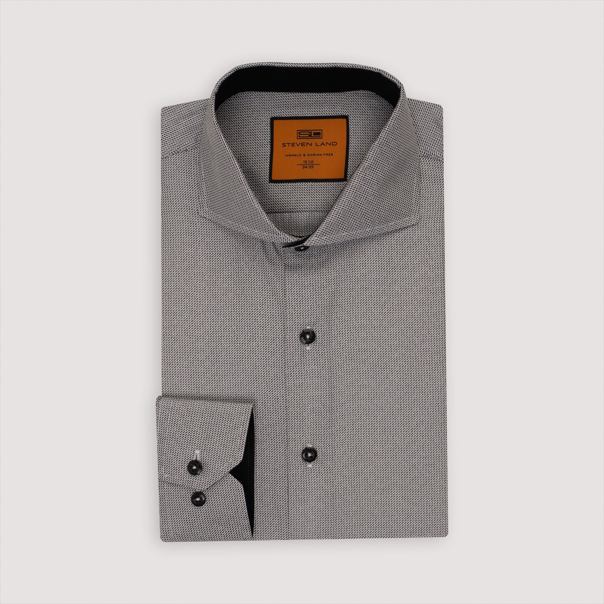 Sharp and sophisticated with a modern edge. This dress shirt features a bold cutaway collar and sleek French placket for refined style. Convertible mitered barrel cuffs offer versatility for any occasion, while the wrinkle and shrink-free cotton blend with a geometric dobby pattern. Your new go-to for an effortlessly confident style.
