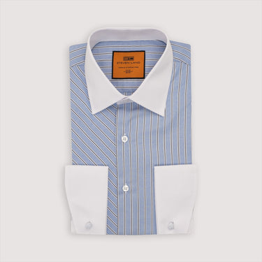 The Larson | Contrasting Point Collar | French Cuff | Blue