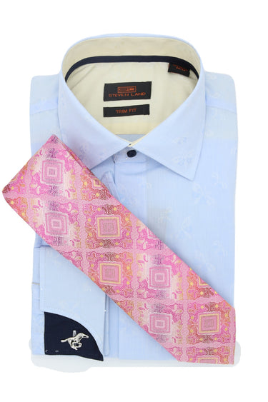 Steven Land | 4 PC Set | Dress Shirt, Tie, Hanky & Cufflink