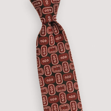 The Aztec Silk Tie is a quality tie made from the softest silk fabric that will bring your luxurious menswear to the next level. The alternating direction of the exotic tiles attract the eye while the smooth silk catches the light to enhance the vibrance of the line work. This men’s accessory will make your whole outfit look top tier.