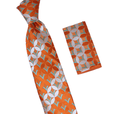 Barcelona Tile Tie & Pocket Square | 100% Silk | Rust