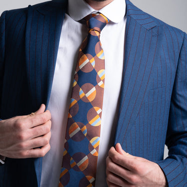 The Steven Land Hancock Tie has been crafted using the finest silk. A nostalgic influence from the 70’s jazz era. Designed with macro argyle and polka dot patterns and geometric pops of color that are sure to jazz up your style.