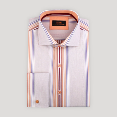 Bold stripes in rich colors alternate with subtle woven diamonds in this luxurious shirt. Creatively paired with a tie or worn casually on its own, this shirt is distinctive for its color and pattern play.