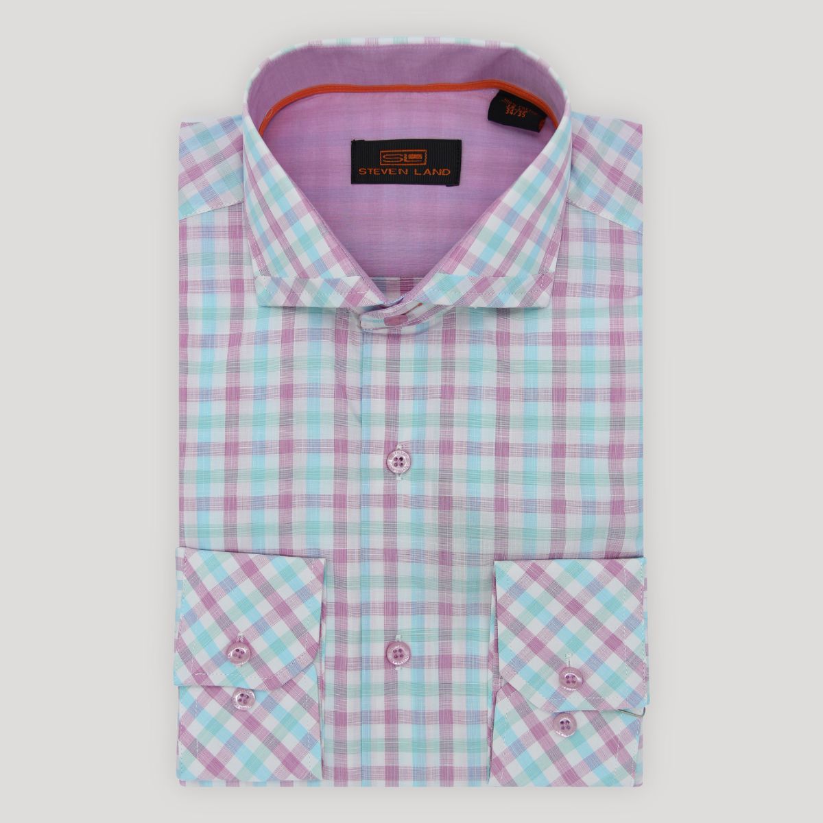 Crafted from 100% Cotton, this refined Steven Land shirt is an easy way to enjoy unmistakable quality every day. The shirt features a modern take on classic checks and has a semi-cutaway collar, with a unique trim edge design. Match it with a wool suit and a silk tie for a sleek, contemporary look or dress it down with jeans.