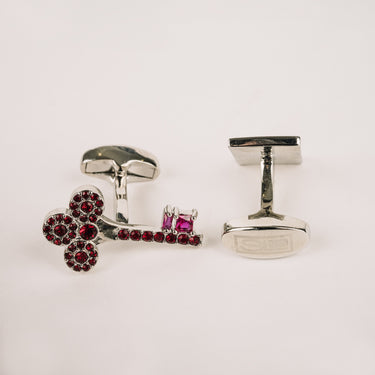 - Cufflink #1 shaped in a vintage key silhouette decorated with ruby micro stones