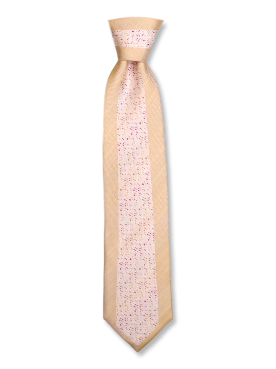 The highly detailed midcentury pattern is centered and framed in this 100% silk woven tie